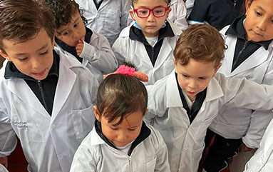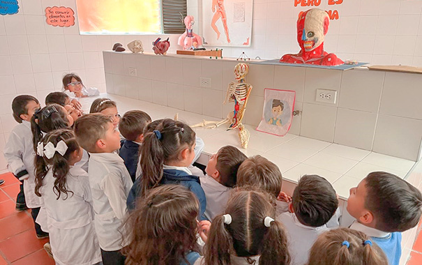 Desarrollamos actividades dinámicas donde se integran diversas áreas del conocimiento en la búsqueda de estrategias que promuevan un desarrollo integral del estudiante y un fortalecimiento de sus valores ambientales; para esto contamos con espacios adecuados como zonas verdes, el paso de un afluente y una huerta escolar.